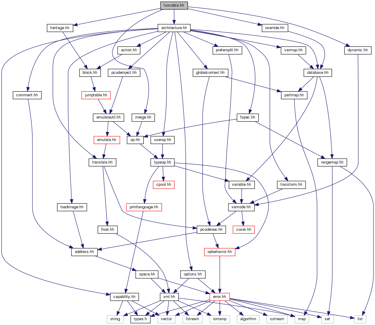 Include dependency graph for funcdata.hh: